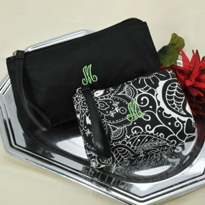This set of Black Damask Wristlet Purses will make an ideal gift for all girls on the go! Whether you're heading to class, a night on the town or out to dinner with family and friends, these ultra trendy purse alternatives will be the perfect go-to accessory. Fashioned in sturdy canvas, each wristlet features a super stylish black and white damask print, free personalization and three interior compartments for easy organization. The smaller version, lined in black, will add pop to any ensemble; while the larger, all black version, lined in damask, will easily match any outfit for any occasion. You'll get the functionality of a wallet without the bulk of a purse!